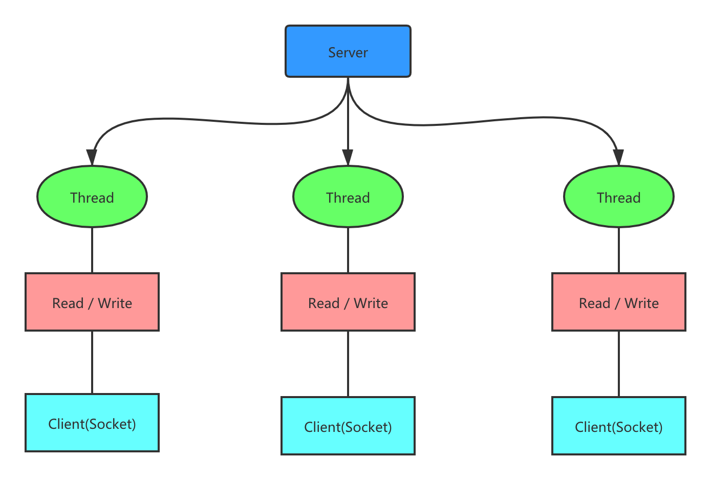 - 每个请求都需要创建独立的线程,与对应的客户端进行数据