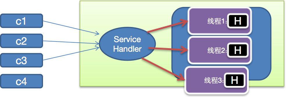 Worker线程监听到Selector中通道发生自己感兴趣的事件后,就进行处理(就由handler),注意handler已经加入到通道