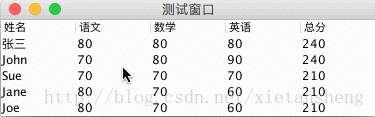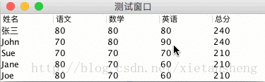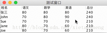 Object[] columnNames = {"姓名", "语文", "数学", "英语", "总分"};