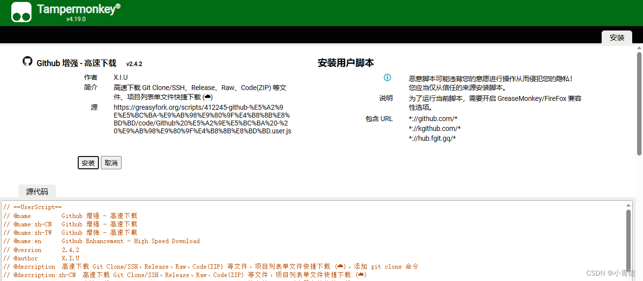 # 2)下载安装–>Github 增强 - 高速下载 用户脚本